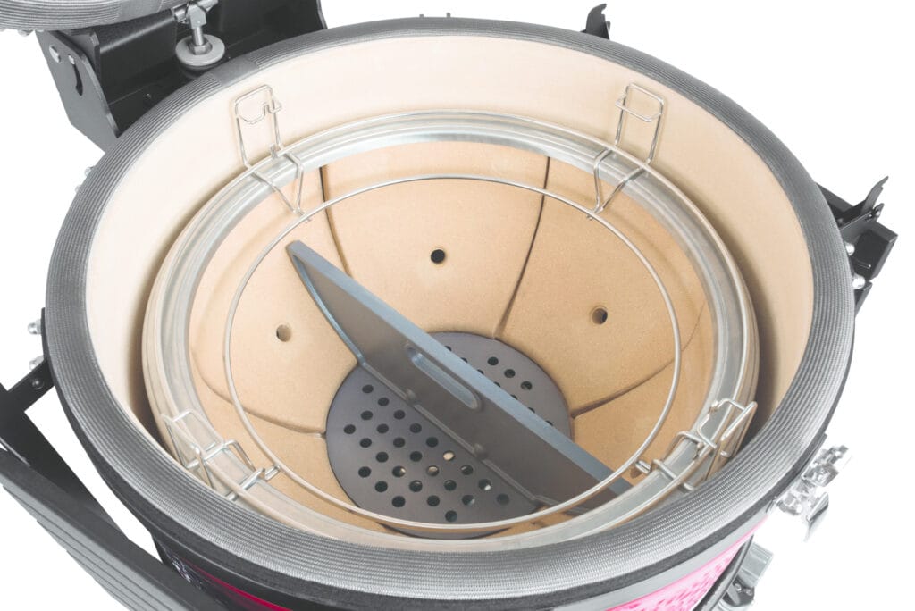 - Air lift hinge: als we het over verbeterde innovaties hebben, mag het air lift hinge niet ontbreken. Een keramische barbecue is behoorlijk zwaar, dit geldt dus ook voor het deksel. Met het air lift hinge lift je het deksel met één vinger omhoog.