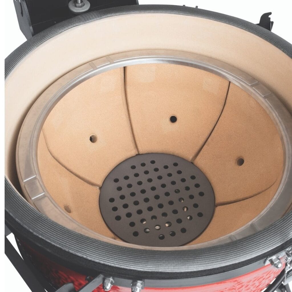 Met de SloRoller krijgt het eten de perfecte rooksmaak. Deze tool tovert de kamado barbecue om in een hoogwaardige rookoven. Door de SloRoller verspreid de hitte en rook zich in circulerende golven. Dit zorgt voor een gelijkmatige verhitting van het eten. Je kunt hem gebruiken bij zowel lage als hoge temperaturen. (tot 260°C) Deze SloRoller Hyperbolic Smoke Chamber is gebaseerd op een technologie die ontwikkeld en gepatenteerd werd door Harvard University.