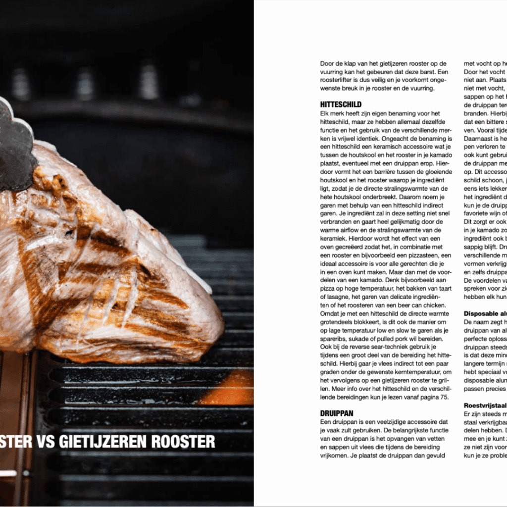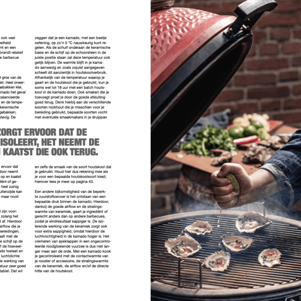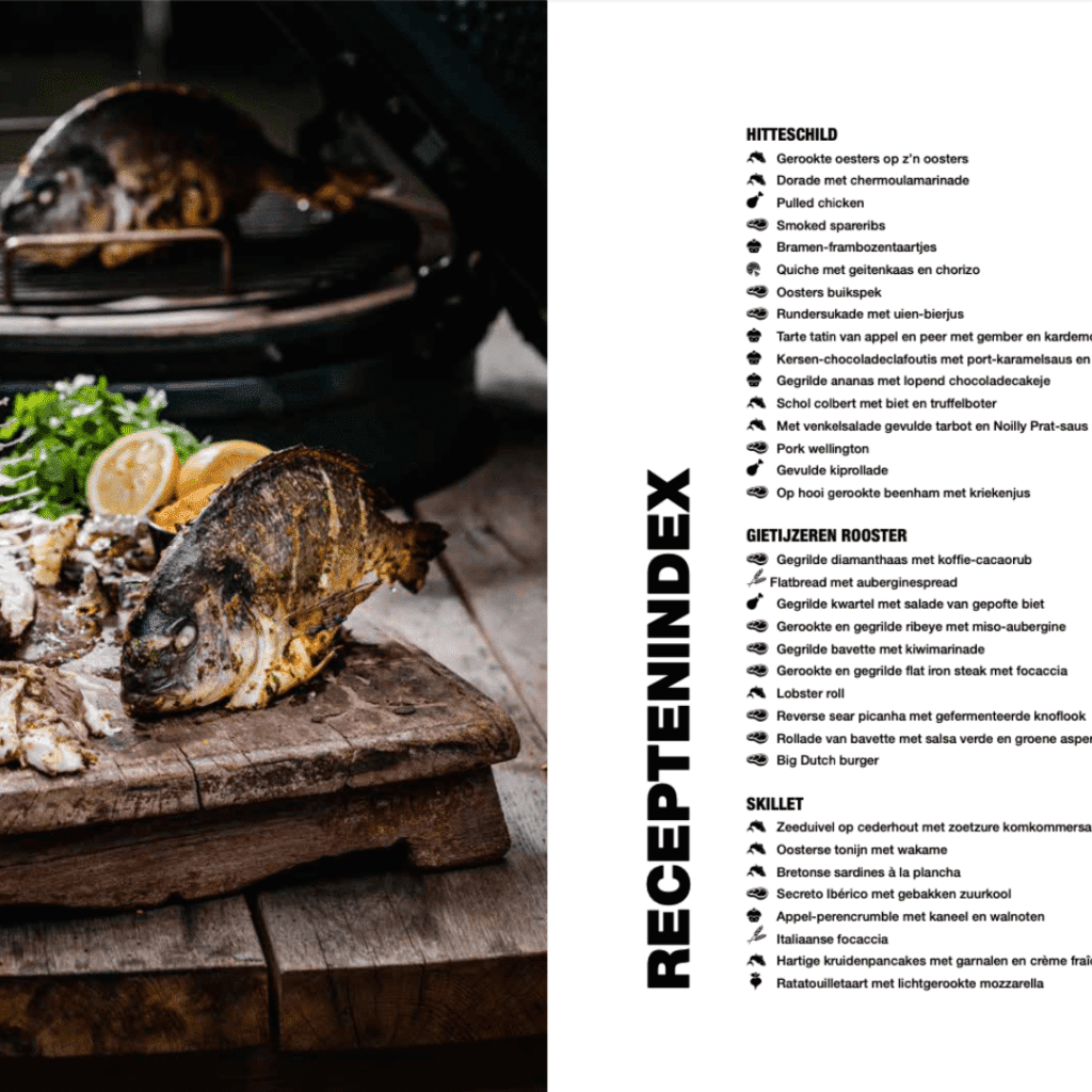 Een bijzonder handige functie van het boek is de indeling per accessoire, waardoor je snel kunt zien welke recepten geschikt zijn voor bijvoorbeeld een skillet, een pizzasteen of een gietijzeren rooster. Op deze manier leer je niet alleen je kamado beter kennen, maar ook de accessoires die je kunt gebruiken om je culinaire mogelijkheden te vergroten. Met deze kennis in de hand word je al snel geïnspireerd om te experimenteren en je eigen varianten op de recepten en kooktechnieken te bedenken.