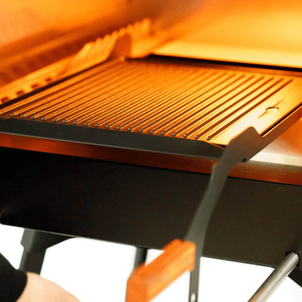 Het easy-in/out schuifsysteem, ontworpen om perfect bij de grill te passen, maakt het moeiteloos in- en uitschuiven van gerechten mogelijk. Dit innovatieve systeem voegt niet alleen gebruiksgemak toe, maar opent ook de deuren naar grenzeloze culinaire mogelijkheden.